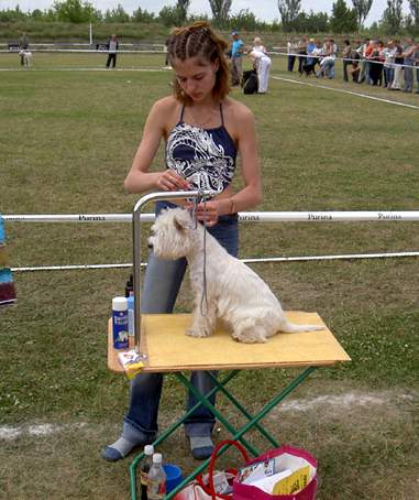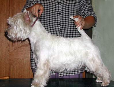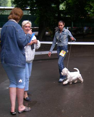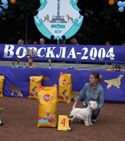 Капа - дочка чемпионов Bournehaven Limited Choice и Pailot Rapsodia Ringleader. Второе имя Капы - Тигра - получено за то, что еще щенком она любила порычать. Такая вот разговорчивая девушка. Однако это не мешает ей весело играть с Феней. С Капой мы видимся все чаще и чаще. Девушка она симпатичная, что и подтверждают судьи не только в рингах, но и в бестах. Капа побеждала в Бест ин шоу беби и щенков, становилась призером бестов. Судя по тому, что она сейчас зарегистрирована едва ли не на все украинские выставки, это только начало.