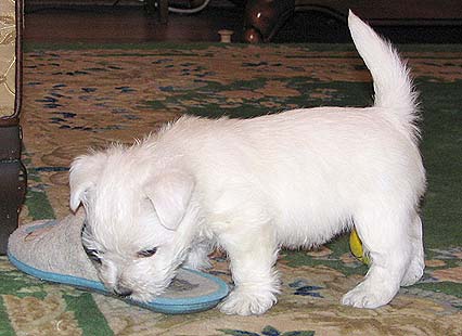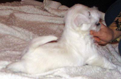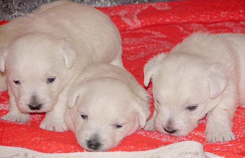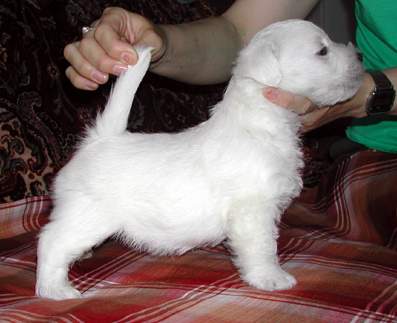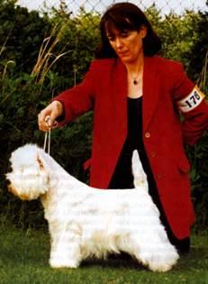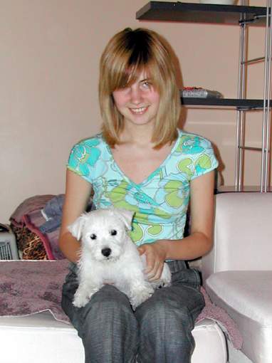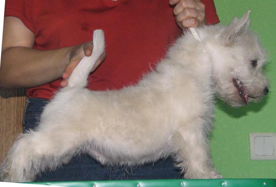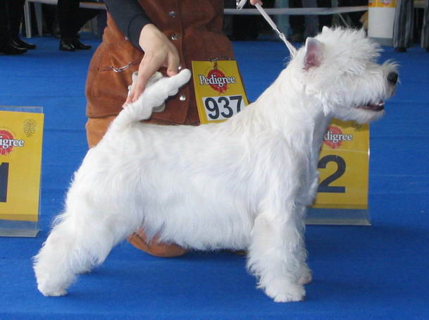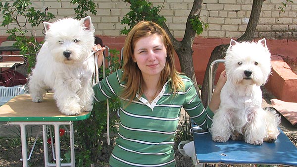 Горвин Александрия (дома просто Ася) - единственная дочка Фенечки и одна из лучших вестиков Украины. По происхождению - "чистая Англия", поскольку ее отец и оба родителя Фени родились в Великобритании. Выставочная карьера Аси проходит очень успешно, не зря многие судьи отмечали, что Ася могла бы иметь прекрасные результаты на выставках любого уровня и в любой стране - к двухлетнему возрасту она получила титулы Чемпиона Украины и Гранд Чемпиона Украины, а в два с небольшим, попав в Москве на выставку, где вестиков оказалось неожиданно много, стала Лучшей сукой и закрыла титул Чемпиона России.