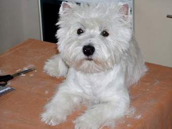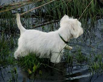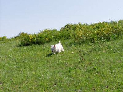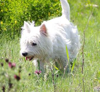 Белый вестик на зеленой лужайке - просто райская идиллия...