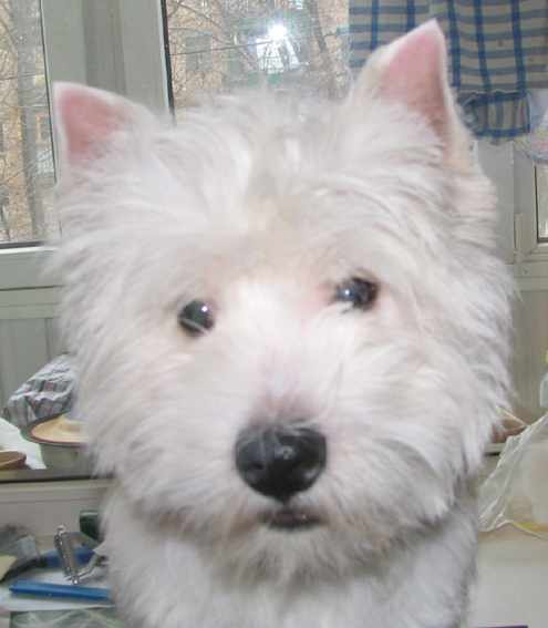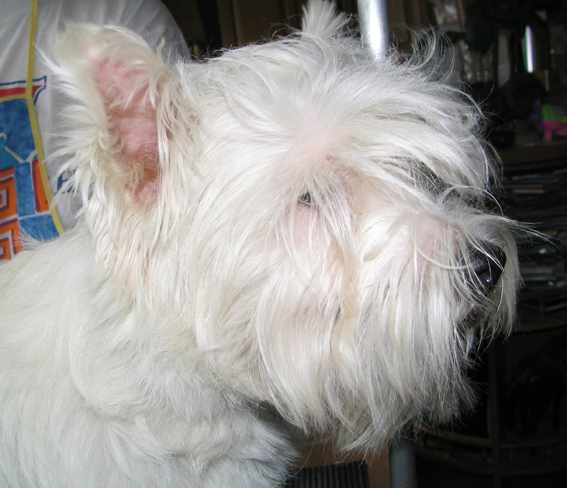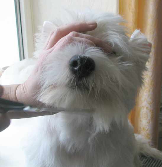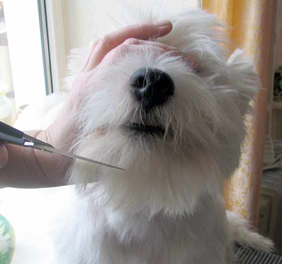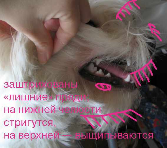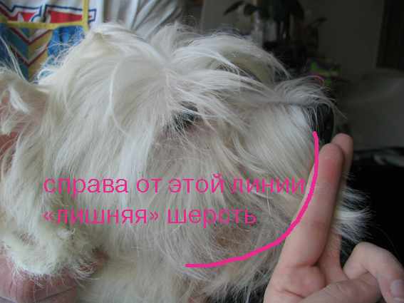 На этой фотографии видно, какой длины шерсть оставлена на лбу и висках.