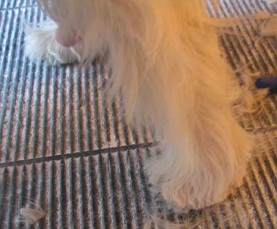 Левая задняя нога. Шерсть на стопе и между подушечками