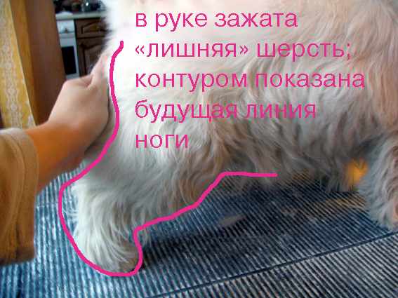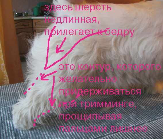Тримминг вестика для новичка (в фотографиях). Задние лапы, бедра.
