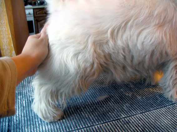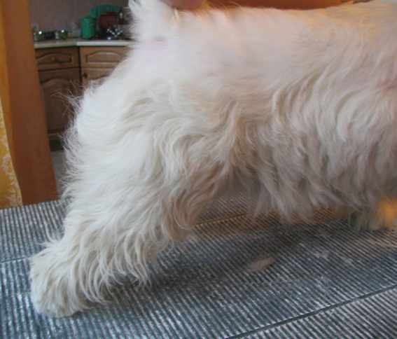 Правая задняя нога (слева свисает еще нетриммингованный хвост)
